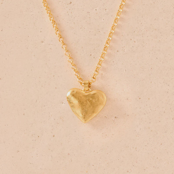 A bold, textured heart-shaped pendant on a statement chain, perfect for stacking and layering. Philia was inspired by the ancient Greek word for love between friends and symbolizes strong bonds of loyalty and affection.