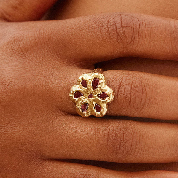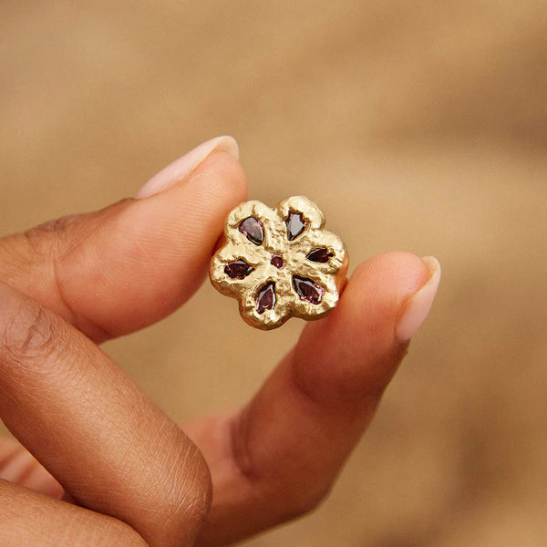 Celebrating the forces of spring and summer, Rita is our rendition of a flower in full bloom. Its deep rosewood stone will bring you balance, courage, and compassion.
